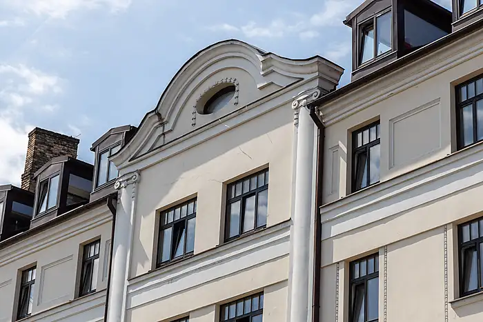 Sākot ar ēkas otro stāvu – dzīvojamās platības, kas kopā ir 24 dzīvokļi, kuru platības ir no 31,3 līdz 69,2 m2.