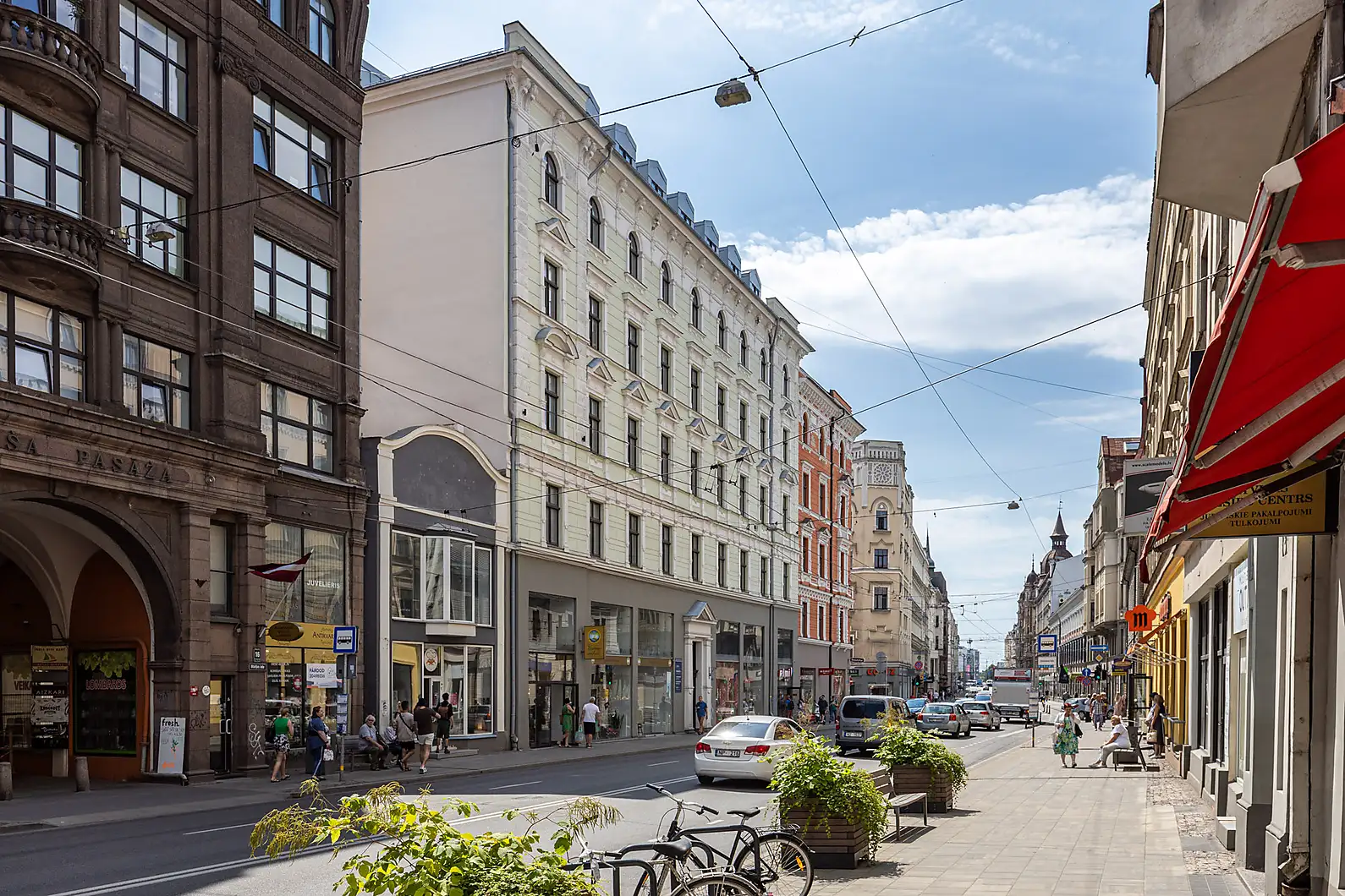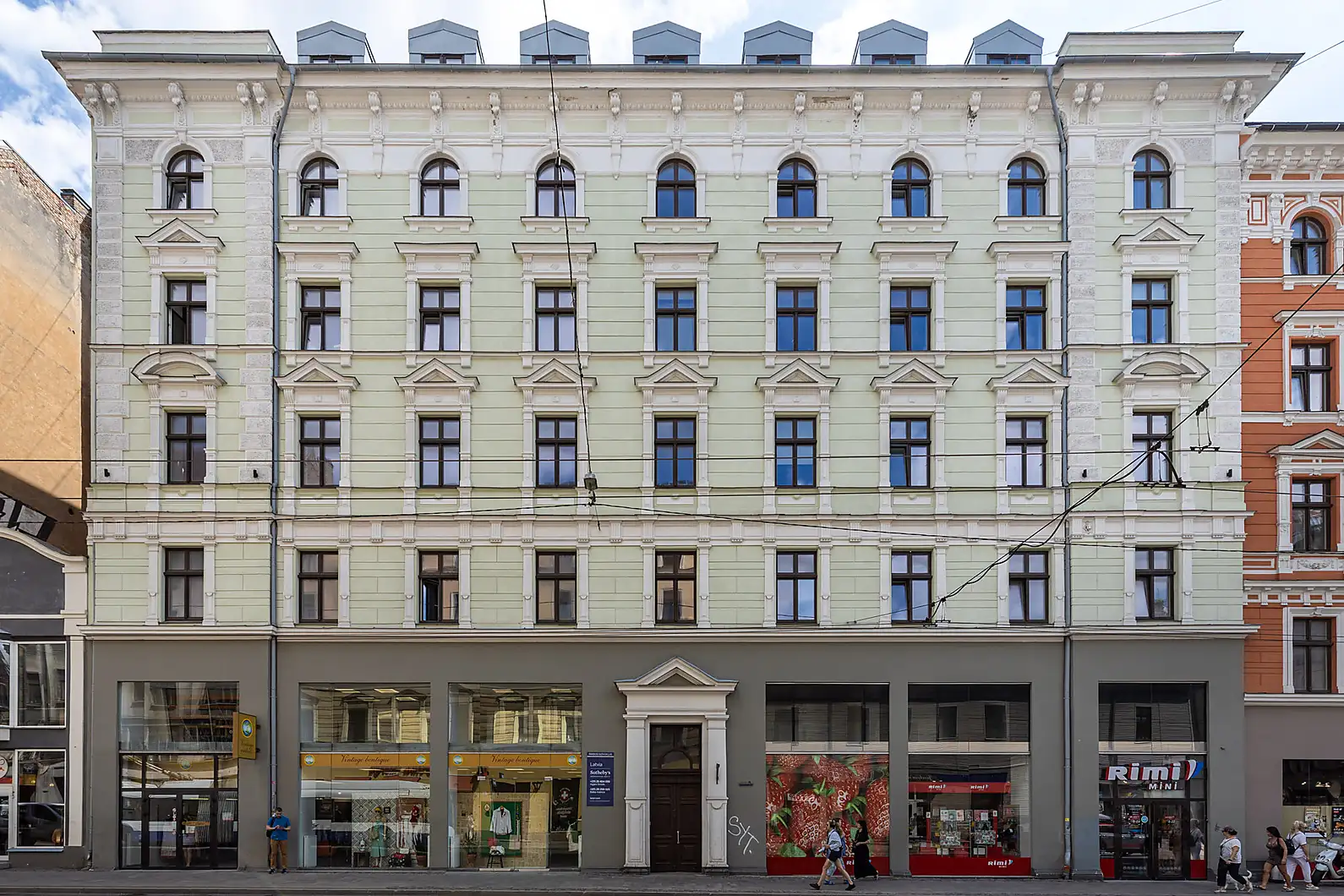 Marijas iela 14A, 14C būvēta tālajā 1885. gadā, 1903. gadā šim esošajam ēku ansamblim pievienojās ēka Marijas ielā 14, tās būvētas kā īres nami ar veikaliem pirmajā stāvā.