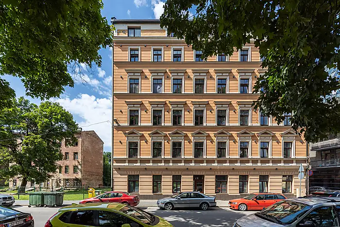 Piecstāvu nams celts 20. gadsimta sākumā un tas atrodas “Maskavas priekšpilsētas” aizsardzības teritorijā. Ēkas rekonstrukcijas projekts tika uzsākts 2014. gadā, kuras laikā tiek stiprināti pamati, uzprojektēta jauna pagalma ārsiena, pilnībā nomainīti ēkas pārsegumi, kā arī tiek nosiltinātas ārsienas. Mainītas tiek arī visas inženierkomunikācijas, tiek pacelta jumta kore, kas atļauj izbūvēt desmit darbnīcas. Kopā ēkā projektēti 60 nelieli dzīvokļi ar platībām no 27 m2- 41m2.