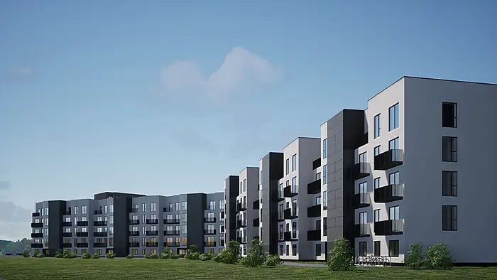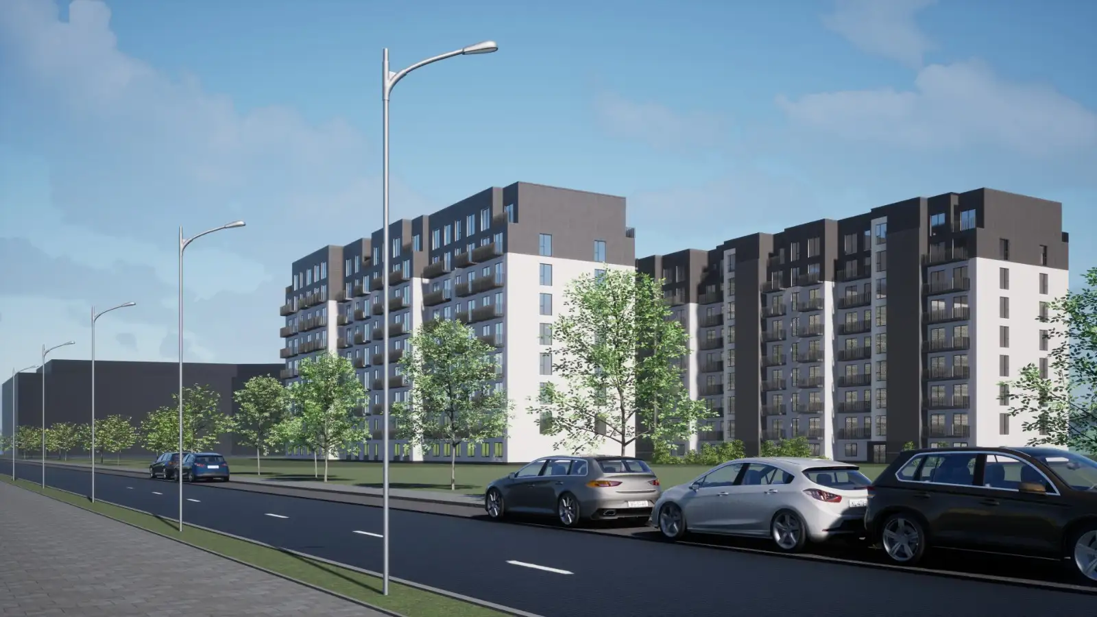 Daudzdzīvokļu ēku komplekss sastāv no četrām ēkām, divas no tām piecstāvu, divas – deviņstāvu. Deviņstāvu ēkās paredzēti 274 dzīvokļi, 10 no dzīvokļiem paredzēti studijas tipa, 232 – vienas guļamistabas un 32 – divu guļamistabu. Piecstāvu ēkām paredzēti 162 dzīvokļi, no tiem 18 studijas tipa, 96 – vienas guļamistabas un 48 – divu guļamistabu.