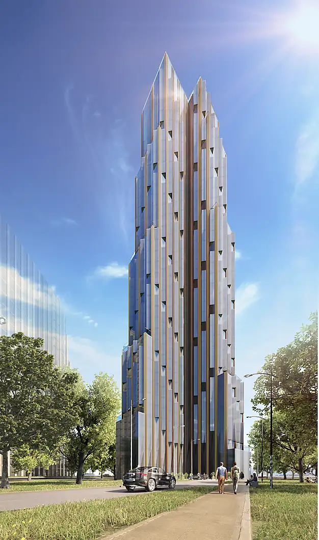 “Apartamenta viesnīca” projekts pie pašas Daugavas krasta, tajā paredzēti 40 stāvi (150m augsts), ar 3 līmeņu stāvu pazemes autostāvvietām, kur varēs izvietot 298 automašīnas.
